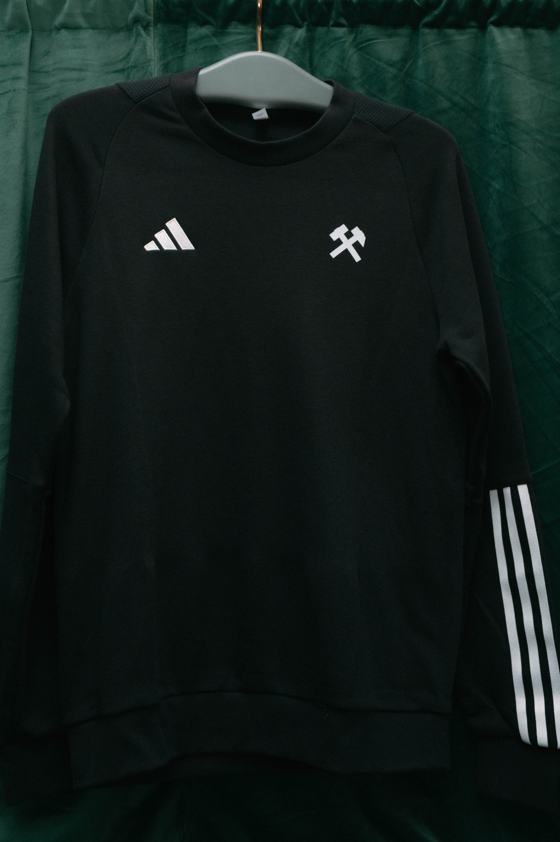 Czarna bluza adidas z kapturem to must-have w szafie każdego kibica Górnika Łęczna. Wyróżnia ją unikalny nadruk na plecach – górnicze młotki oraz napis Górnik Łęczna, które podkreślają klubową tożsamość. Wykonana z wysokiej jakości materiału, gwarantuje wygodę, trwałość i sportowy styl. Klasyczny fason z kapturem i kieszenią kangurką sprawia, że bluza sprawdzi się zarówno na stadionie, jak i na co dzień.