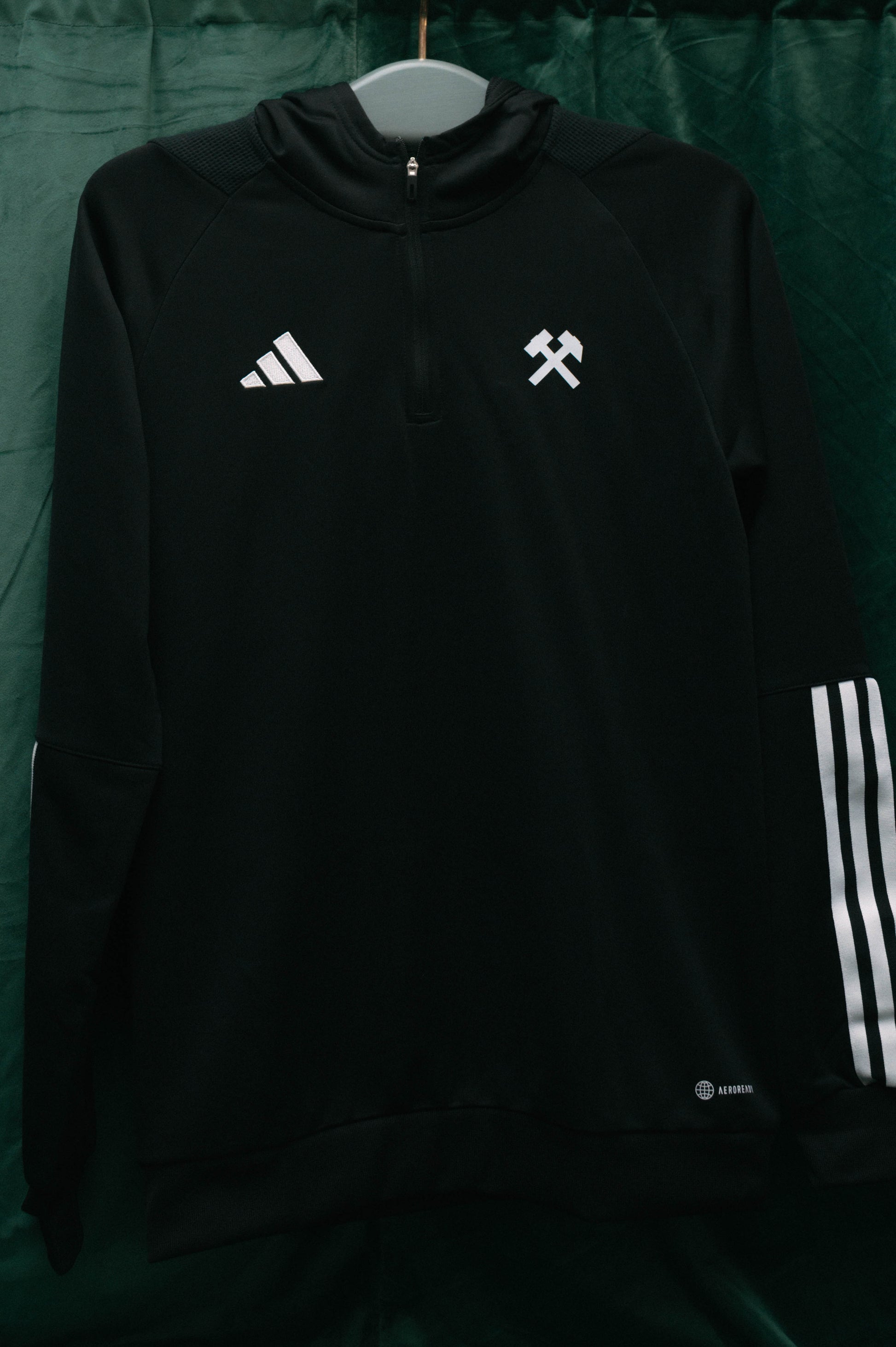 Bluza z kapturem adidas z młotkami Górnika Łęczna to połączenie sportowego stylu i klubowej dumy. Wykonana z wysokiej jakości materiałów, zapewnia komfort i swobodę ruchów na co dzień oraz podczas treningu. Klasyczny krój z kapturem i praktyczną kieszenią typu kangurka sprawia, że bluza jest zarówno wygodna, jak i funkcjonalna. Delikatny haft z górniczymi młotkami na piersi podkreśla przynależność do Górnika Łęczna, czyniąc z niej idealny wybór dla każdego kibica.
