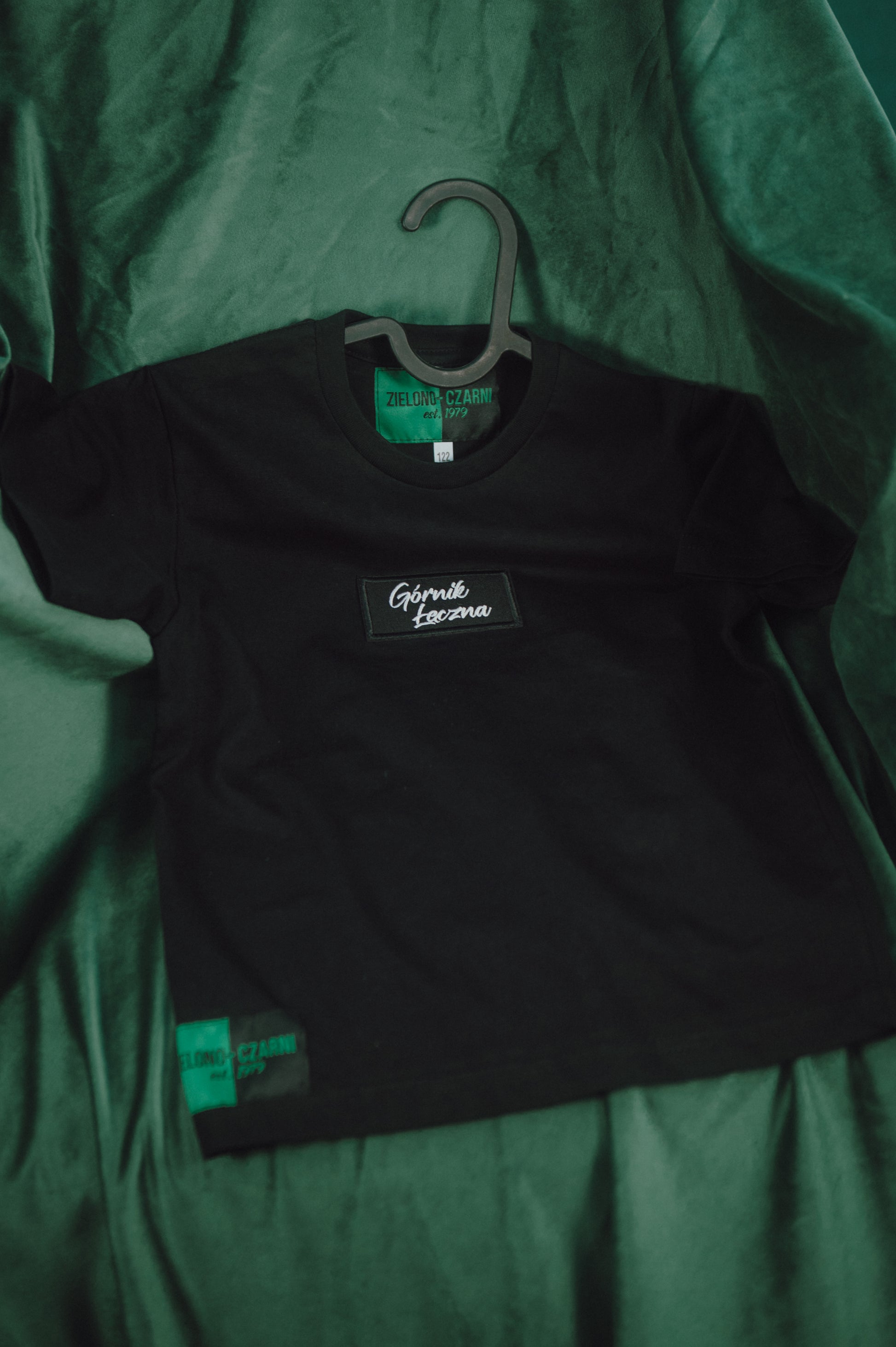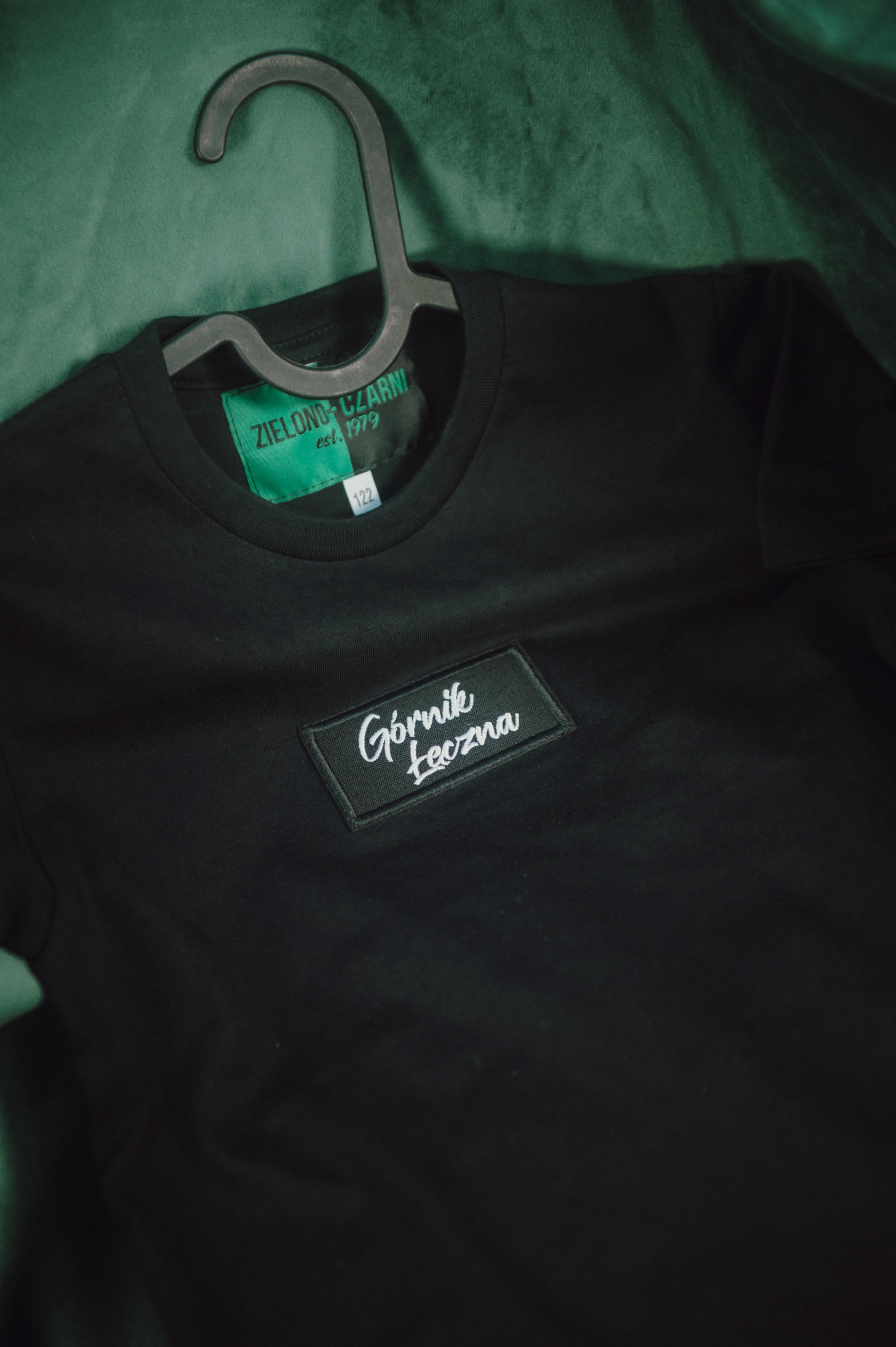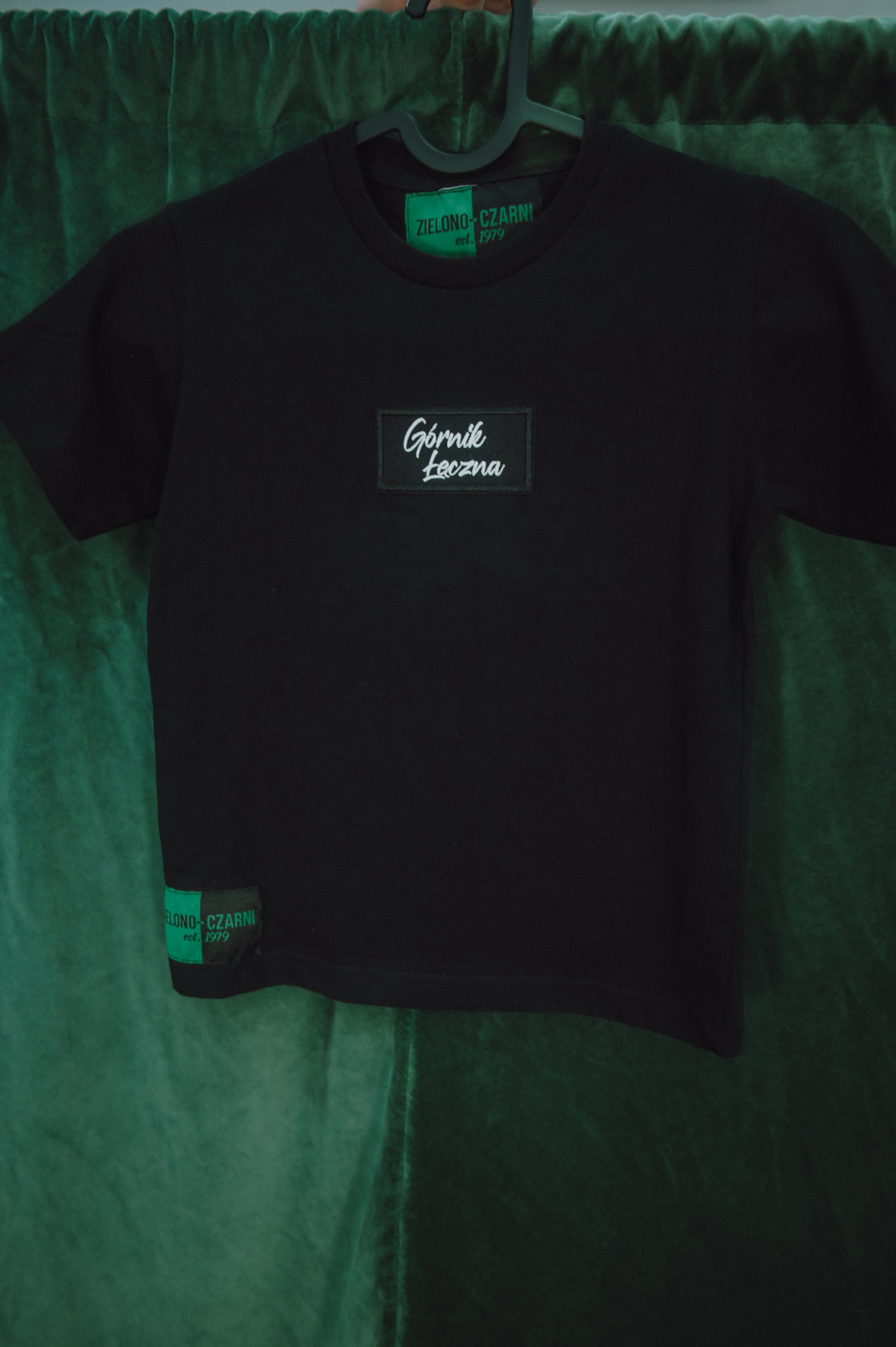 Czarna koszulka bawełniana to stylowy i wygodny wybór dla każdego kibica. Z przodu zdobi ją haftowana naszywka z napisem Górnik Łęczna, podkreślająca klubową dumę i elegancki charakter. Całość uzupełnia detal w postaci metki Zielono-Czarni, umieszczonej zarówno na wewnętrznym karku, jak i z przodu koszulki. Klasyczny krój i miękka bawełna sprawiają, że sprawdzi się idealnie na co dzień i podczas kibicowania.