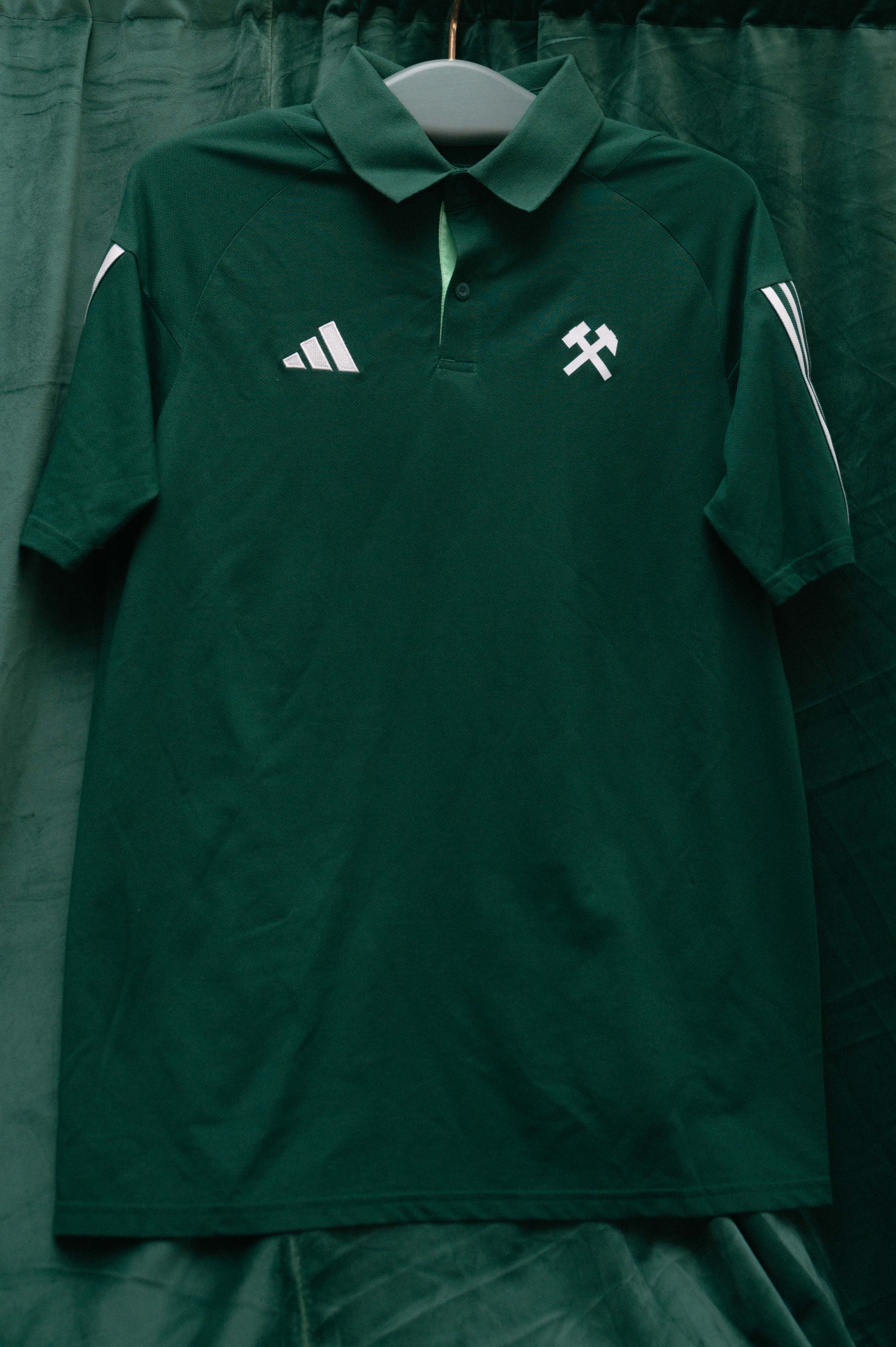 Elegancka i sportowa w jednym – koszulka polo adidas z młotkami górniczymi na piersi to doskonały wybór dla kibiców, którzy cenią wygodę i styl.